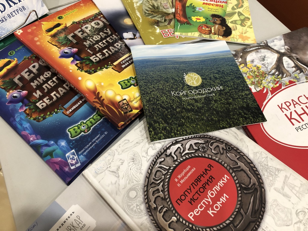 Для гостей площадки библиотеки были развёрнуты баннерная выставка «Писатели Коми – детям», выставка «Говорящие книги» с «оживающими страницами», а также выставка методических и краеведческих изданий Маршаковки.