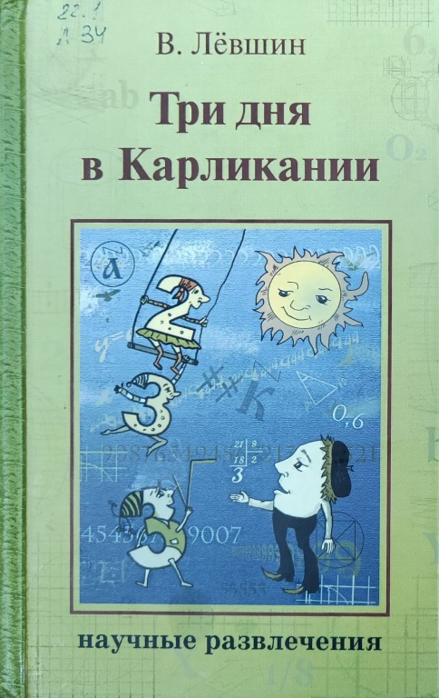 Лёвшин В. А. Три дня в Карликании : сказка да не сказка / В. Лёвшин ; [худож. М. Афанасьева]. ‒ Москва : Издательский Дом Мещерякова, 2009. ‒ 160 с. ‒ (Научные развлечения). ‒ 978-5-91045-121-0.