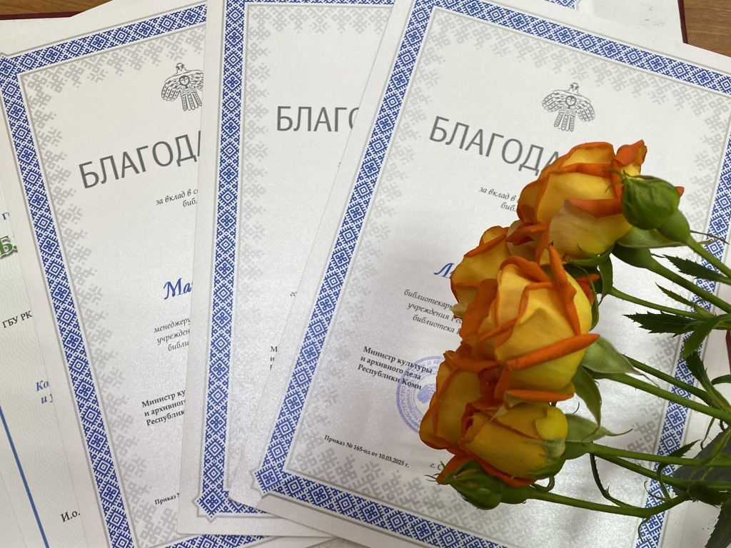 В преддверии Общероссийского дня библиотек семь сотрудников Национальной детской библиотеки Республики Коми им. С.Я. Маршака награждены Благодарственными письмами Министерства культуры и архивного дела Республики Коми за вклад в сохранение и развитие библиотечного дела. Коллеги поздравляют с получением награды Ольгу Худяеву, Ольгу Кориэлл, Екатерину Лагереву, Любовь Плехову, Марию Степченко, Марию Терентьеву и Анну Юристовскую.